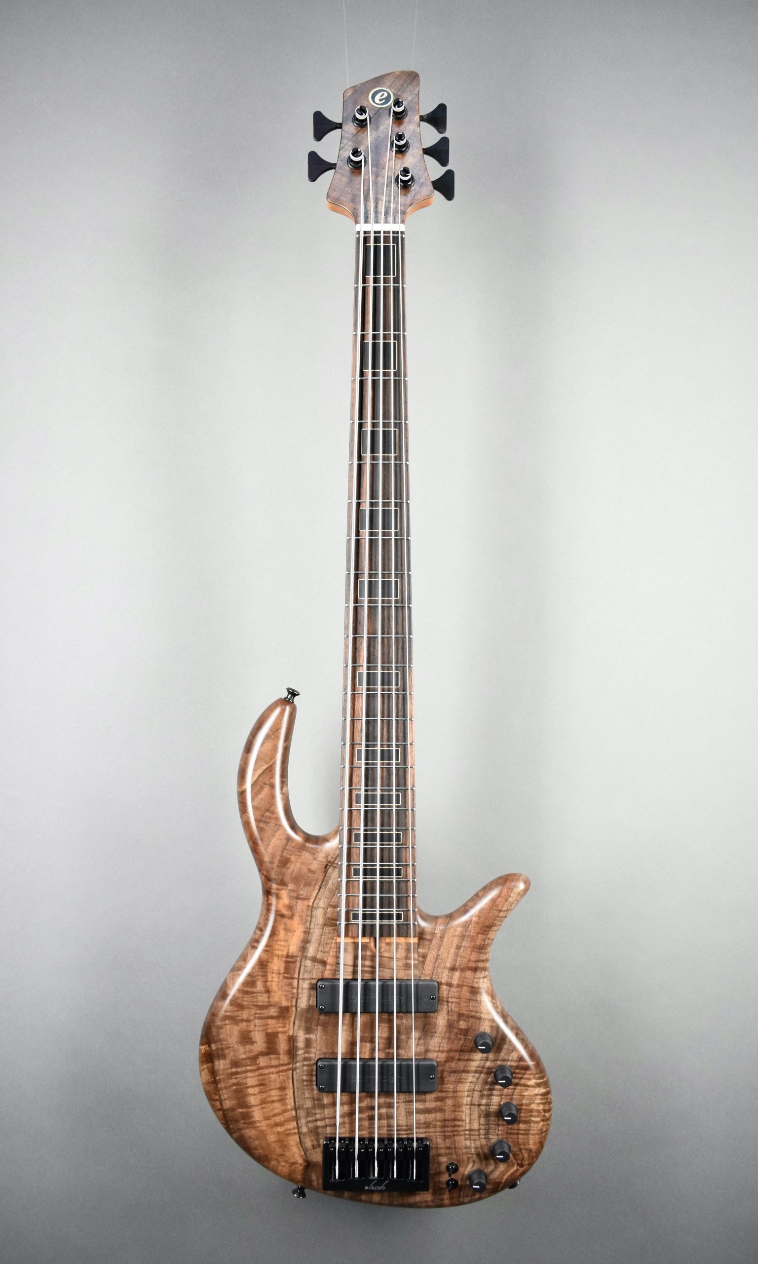 Elrick Hand-Carved e-volution 5-String Bass Guitar, Gold Series, 1-Piece Solid Walnut Body / Macassar Ebony fretboard – #E2424